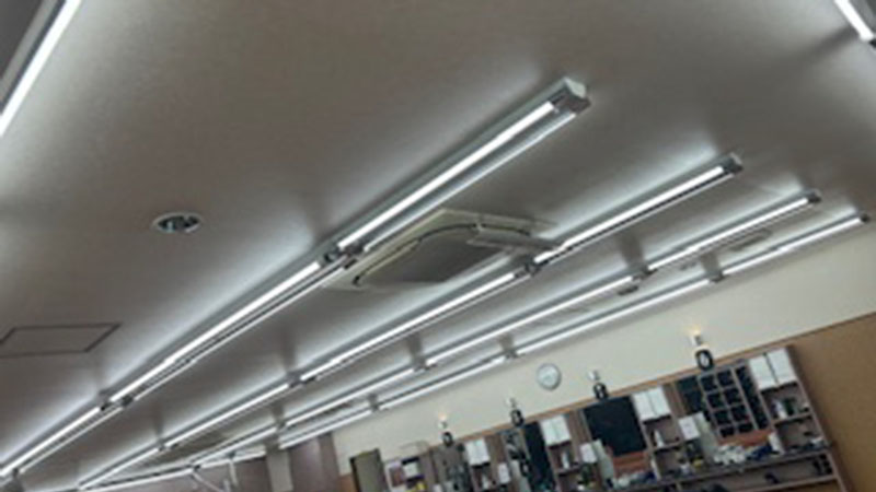 エアコン入替工事、高圧受電設備工事、照明交換工事、配線工事をはじめとした電気設備工事全般を行うことができます。